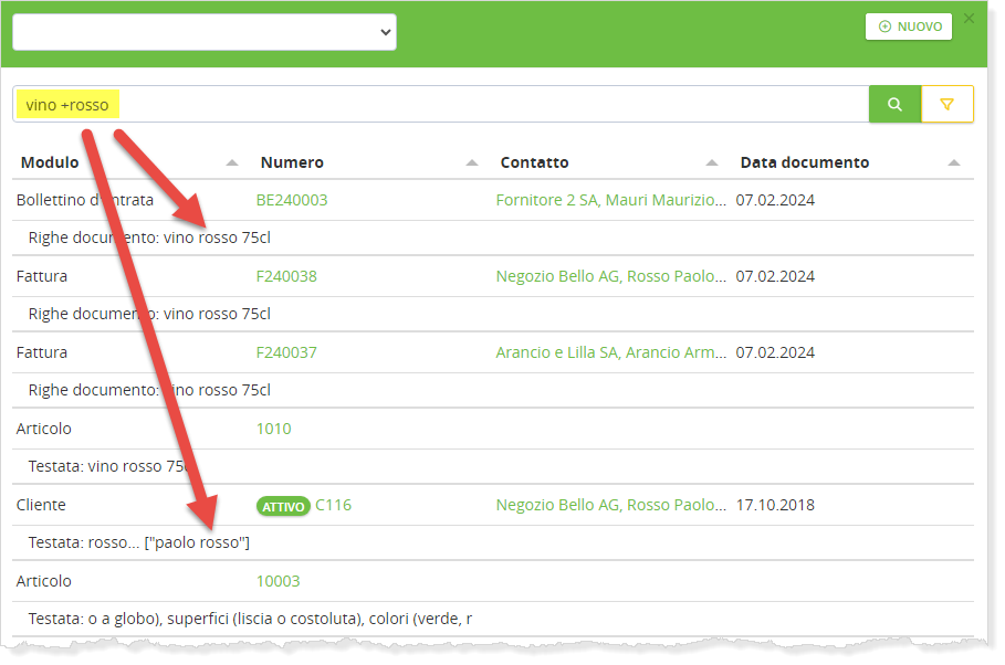 2. Ricerca con parte di una parola