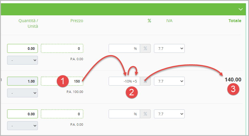 Nella versione 3.4.0 di inizio 2021 è stato introdotto un nuovo sistema di calcolo per i ribassi (sconti) e per gli aumenti di prezzo in un documento.