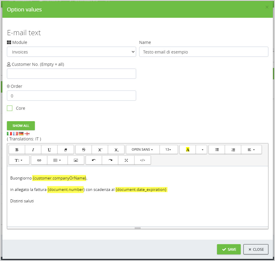 Con l’invio di documenti per email c’è la possibilità di creare dei testi predefiniti che possono essere usati e richiamati all’interno del compositore stesso di invio.